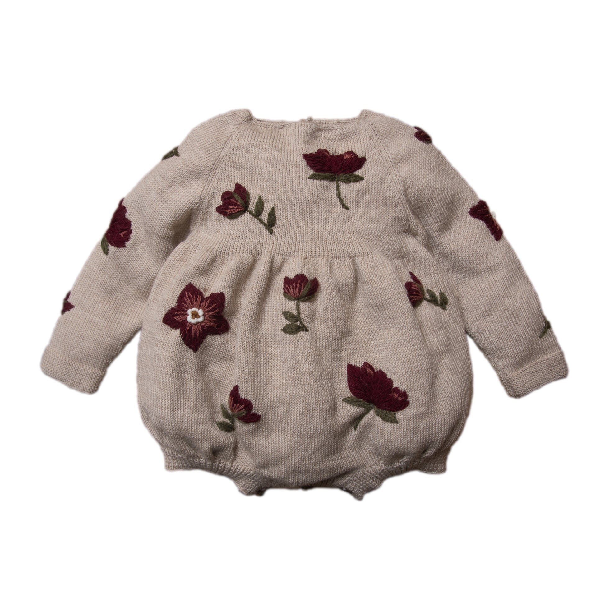 手編みの長袖ニットロンパース。