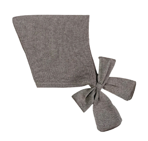 ファインニットの“とんがり”シルエットに、きれいなリボン結びができるワイドなタイ付き。顔まわりをやさしく包む、秋冬の定番ピクシーボンネットです。