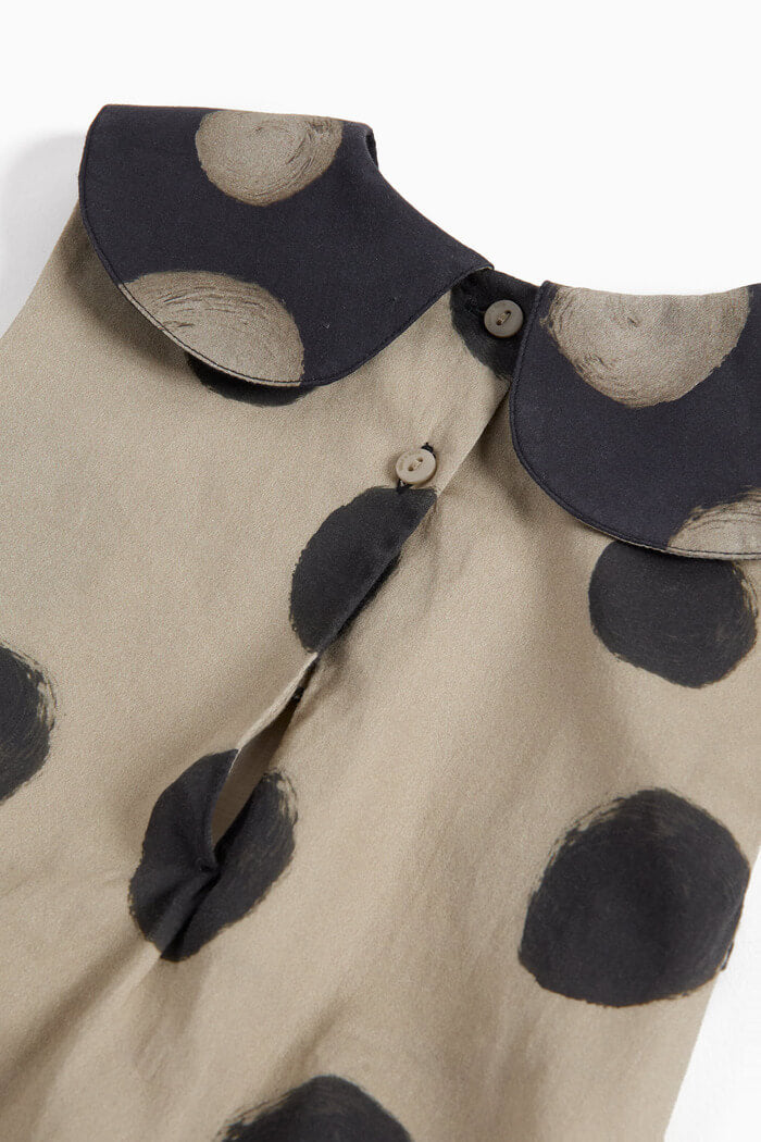 手描きのようなドットプリントが印象的で、シンプルながらもアート性を感じさせる一枚です。